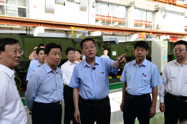 圖為李源潮(左二)在一機集團調(diào)研。 9月3日下午,中共中央政治局委員、國家副主席李源潮在內(nèi)蒙古自治區(qū)黨委副書記、政法委書記李佳,包頭市委副書記、代市長趙江濤等陪同下到中國兵器工業(yè)集團內(nèi)蒙古第一機械集團有限公司調(diào)研。 調(diào)研過程中,一機集團董事長、黨委書記白曉光向李源潮詳細介紹了一機集團60多年來的發(fā)展歷程、獲得的主要榮譽和軍民品結(jié)構(gòu)等方面情況以及信息化管理和智能制造在總裝生產(chǎn)線上的應(yīng)用情況。李源潮邊聽介紹邊不時地插話詢問,了解企業(yè)的人員總量、各種產(chǎn)品技術(shù)性能特點、生產(chǎn)管理水平等情況。當了解到一機集團作為我國唯一的主戰(zhàn)坦克和8×8輪式戰(zhàn)車研制生產(chǎn)基地,并為我國裝甲裝備的建設(shè)做出了重要貢獻后,連聲說:“你們一機了不起,很了不起?!?/p> 來到國家級技能大師工作室駐軍品總裝工作站,李源潮與技能大師盧仁峰和張學海親切握手交談。當?shù)弥髧そ潮R仁峰在克服自身殘疾的情況下不僅練就了精湛的焊接技藝,而且還為公司培養(yǎng)了許多年輕的焊接技術(shù)人才時,高興地握著盧仁峰的手說:“好啊,你很不容易啊,大家都要向你學習?!崩钤闯边€親切地詢問了工作站每一位青年職工的學習、工作、生活情況??吹竭@些青年職工飽滿的精神狀態(tài)時,李源潮動情地說:“勞動者最光榮,你們是第一線的勞動者,是真正為國家做出貢獻和創(chuàng)造價值的。你們年輕人一定要把大國工匠和勞動模范的班接好,為企業(yè)、為國家多做貢獻?!?/p> “你們公司現(xiàn)在有多少名團員青年,平時團組織都有什么活動?”在五分公司503車間團支部建設(shè)園地前,李源潮仔細詢問了解一機集團的共青團工作開展情況。他還非常認真地從公司團干部手機中仔細了解了一機集團團委落實團中央“1+100”團干部聯(lián)系青年制度的開展情況,勉勵團干部改進作風,更好地直接聯(lián)系服務(wù)青年。 在總裝生產(chǎn)線,李源潮興致勃勃地登上公司最新研制生產(chǎn)的99A坦克,向白曉光詳細詢問了坦克自動裝彈系統(tǒng)、防護性能、火炮威力等各項戰(zhàn)技指標情況。 在五分公司觀禮臺前,三輛不同型號鐵甲戰(zhàn)車轟鳴著駛過,李源潮高興地不停鼓掌。隨后,李源潮還認真了解了現(xiàn)場擺放的各種型號的裝甲戰(zhàn)車的有關(guān)情況。 調(diào)研結(jié)束時,李源潮握著白曉光的手說,“謝謝一機集團的干部職工為我國國防事業(yè)做出的重要貢獻,請代我向全體干部職工問好”。(朱小萌)