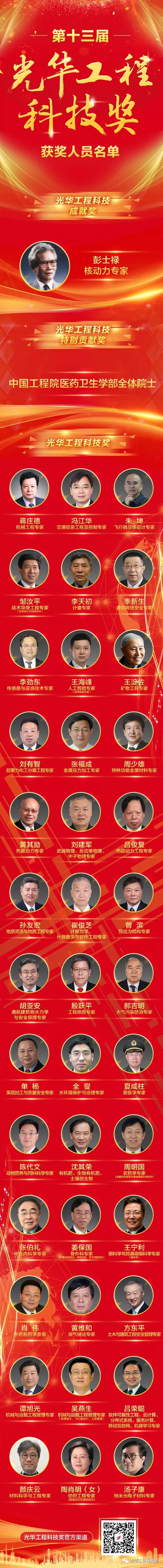 11月8日,第十三屆光華工程科技獎揭曉儀式在北京隆重舉行。中國兵器工業(yè)集團(tuán)有限公司科技委副主任委員、戰(zhàn)術(shù)導(dǎo)彈工程專家鄒汝平獲第十三屆光華工程科技獎(獲獎人員全名單及鄒汝平事跡附后)。 光華工程科技獎由中國工程院主管,每兩年頒發(fā)一次,目前已是第十三屆,被譽為“中國工程界最高獎項”,極大地激勵了我國工程師、科學(xué)家從事工程科技研究、發(fā)展、應(yīng)用的積極性和創(chuàng)造性。根據(jù)光華工程科技獎候選人提名要求,候選人需在重大工程設(shè)計、研制、建造、生產(chǎn)、運行、管理等方面解決關(guān)鍵科學(xué)技術(shù)問題或在工程科學(xué)技術(shù)及工程管理領(lǐng)域有重要發(fā)現(xiàn)、發(fā)明,并有顯著應(yīng)用成效,或者是應(yīng)用本人研究成果、發(fā)明創(chuàng)造,發(fā)展高新技術(shù)及相關(guān)產(chǎn)業(yè),成效特別顯著者才可提名。今年,全國范圍內(nèi)共產(chǎn)生了296名有效候選人。 此次揭曉儀式正式公布了從296名候選人中評選出的第十三屆光華工程科技成就獎、光華工程科技特別貢獻(xiàn)獎以及光華工程科技獎的獲得者,最終僅有40位專家和1個團(tuán)體獲獎。本屆光華工程科技獎的獲獎科學(xué)家們,緊密圍繞國家重大戰(zhàn)略需求,瞄準(zhǔn)經(jīng)濟(jì)建設(shè)和事關(guān)國家安全的重大工程科技問題,緊貼新時代社會民生現(xiàn)實需求和軍民融合需求,加快自主創(chuàng)新成果轉(zhuǎn)化應(yīng)用,為創(chuàng)新驅(qū)動發(fā)展,建設(shè)科技強國,以及實現(xiàn)“兩個一百年”奮斗目標(biāo)和中國夢做出了重要貢獻(xiàn)。 獲獎人員全名單