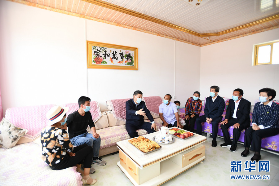 6月8日至10日,中共中央總書記、國家主席、中央軍委主席習(xí)近平在寧夏考察。這是6月8日下午,習(xí)近平在吳忠市紅寺堡區(qū)紅寺堡鎮(zhèn)弘德村看望移民搬遷群眾,向村民們揮手致意。 新華社記者 謝環(huán)馳 攝 新華社銀川6月10日電 中共中央總書記、國家主席、中央軍委主席習(xí)近平近日在寧夏考察時強調(diào),要全面落實黨中央決策部署,堅持穩(wěn)中求進(jìn)工作總基調(diào),堅持新發(fā)展理念,落實全國“兩會”工作部署,堅決打好三大攻堅戰(zhàn),扎實做好“六穩(wěn)”工作,全面落實“六保”任務(wù),努力克服新冠肺炎疫情帶來的不利影響,優(yōu)先穩(wěn)就業(yè)保民生,決勝全面建成小康社會,決戰(zhàn)脫貧攻堅,繼續(xù)建設(shè)經(jīng)濟繁榮、民族團結(jié)、環(huán)境優(yōu)美、人民富裕的美麗新寧夏。 夏日炎炎,塞上江南天高云淡,草木蔥蘢。6月8日至10日,習(xí)近平在寧夏回族自治區(qū)黨委書記陳潤兒、自治區(qū)政府主席咸輝陪同下,先后來到吳忠、銀川等地,深入農(nóng)村、社區(qū)、防洪工程、農(nóng)業(yè)產(chǎn)業(yè)園區(qū)等,就統(tǒng)籌推進(jìn)常態(tài)化疫情防控和經(jīng)濟社會發(fā)展工作、鞏固脫貧攻堅成果、加強生態(tài)環(huán)境保護(hù)、推動民族團結(jié)進(jìn)步進(jìn)行調(diào)研。 6月8日至10日,中共中央總書記、國家主席、中央軍委主席習(xí)近平在寧夏考察。這是6月8日下午,習(xí)近平在吳忠市紅寺堡區(qū)紅寺堡鎮(zhèn)弘德村扶貧車間,同正在加工制作紙箱的村民交流。 新華社記者 鞠鵬 攝 吳忠市紅寺堡區(qū)紅寺堡鎮(zhèn)弘德村是生態(tài)移民村,有建檔立卡貧困戶1036戶4497人,目前還有20戶50人未脫貧。8日下午,習(xí)近平首先來到弘德村考察脫貧攻堅工作。在村扶貧車間院內(nèi),他聽取了寧夏以及弘德村脫貧攻堅情況介紹。走進(jìn)扶貧車間,習(xí)近平同正在加工制作紙箱的村民們親切交流。鄉(xiāng)親們告訴總書記,村里引入企業(yè)從事紙箱包裝業(yè)務(wù),解決了一百多人就業(yè)問題。習(xí)近平表示肯定。他指出,興辦扶貧車間目的是扶貧,要堅持扶貧性質(zhì),向困難群眾傾斜,多招收困難群眾就業(yè)。鄉(xiāng)親們在家門口就業(yè),雖然收入不比進(jìn)城務(wù)工高,但省去了住宿、伙食、交通等費用,還能照顧家庭,一舉多得。企業(yè)參與興辦扶貧車間,體現(xiàn)了先富帶后富,很有意義。 6月8日至10日,中共中央總書記、國家主席、中央軍委主席習(xí)近平在寧夏考察。這是6月8日下午,習(xí)近平在吳忠市紅寺堡區(qū)紅寺堡鎮(zhèn)弘德村察看回族村民劉克瑞家院落。 新華社記者 謝環(huán)馳 攝 隨后,習(xí)近平步行察看村容村貌。在回族村民劉克瑞家,他仔細(xì)看院落、客廳、臥室、廚房、牛棚,詳細(xì)了解家庭就業(yè)、收入、看病、社保等情況。劉克瑞告訴總書記,家里的耕地流轉(zhuǎn)了,還養(yǎng)了3頭肉牛,兒子兒媳在附近紡織廠打工,2017年全家脫貧,生活越來越好,鄉(xiāng)親們打心底里感到黨的政策好,真切感受到共產(chǎn)黨親。習(xí)近平詢問劉克瑞老兩口還有什么困難、對今后的日子有什么打算。習(xí)近平強調(diào),鄉(xiāng)親們搬遷后,更好生活還在后頭。希望鄉(xiāng)親們百尺竿頭、更進(jìn)一步,發(fā)揮自身積極性、主動性、創(chuàng)造性,用自己的雙手創(chuàng)造更加美好的新生活。 6月8日至10日,中共中央總書記、國家主席、中央軍委主席習(xí)近平在寧夏考察。這是6月8日下午,習(xí)近平在吳忠市紅寺堡區(qū)紅寺堡鎮(zhèn)弘德村,同回族村民劉克瑞一家親切交流。 新華社記者 謝環(huán)馳 攝 離開村子時,村民們紛紛趕到村口,歡送總書記。習(xí)近平向大家揮手致意,祝愿鄉(xiāng)親們生活幸福。 6月8日至10日,中共中央總書記、國家主席、中央軍委主席習(xí)近平在寧夏考察。這是6月8日下午,習(xí)近平在黃河吳忠濱河大道古城灣砌護(hù)段,察看黃河生態(tài)治理保護(hù)狀況。 新華社記者 鞠鵬 攝 習(xí)近平高度重視黃河流域生態(tài)保護(hù)和高質(zhì)量發(fā)展。他來到黃河吳忠濱河大道古城灣砌護(hù)段,沿岸邊步道,察看黃河生態(tài)治理保護(hù)狀況,聽取黃河寧夏段生態(tài)保護(hù)治理和水利工程建設(shè)情況匯報。習(xí)近平指出,黃河是中華民族的母親河,是中華民族和中華文明賴以生存發(fā)展的寶貴資源。自古以來,黃河水滋養(yǎng)著寧夏這片美麗富饒的土地,今天仍在造福寧夏各族人民。寧夏要有大局觀念和責(zé)任擔(dān)當(dāng),更加珍惜黃河,精心呵護(hù)黃河,堅持綜合治理、系統(tǒng)治理、源頭治理,明確黃河保護(hù)紅線底線,統(tǒng)籌推進(jìn)堤防建設(shè)、河道整治、灘區(qū)治理、生態(tài)修復(fù)等重大工程,守好改善生態(tài)環(huán)境生命線。 6月8日至10日,中共中央總書記、國家主席、中央軍委主席習(xí)近平在寧夏考察。這是6月8日下午,習(xí)近平在吳忠市利通區(qū)金花園社區(qū)黨群活動服務(wù)中心,同社區(qū)志愿者代表親切交談。 新華社記者 鞠鵬 攝 6月8日至10日,中共中央總書記、國家主席、中央軍委主席習(xí)近平在寧夏考察。這是6月8日下午,習(xí)近平在吳忠市利通區(qū)金花園社區(qū)考察民族團結(jié)社區(qū)創(chuàng)建工作情況。 新華社記者 謝環(huá