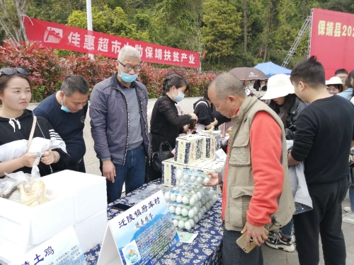 第一步便是養(yǎng)殖江漢綠殼雞,販賣綠殼土雞蛋?!傲窒伦匀环硼B(yǎng),生態(tài)自由采食,原生態(tài)富硒綠殼土雞蛋,1.5元/個,走過的路過的不要錯過啊……”這是朱利慶于“保靖縣2020年消費扶貧愛心認購活動”上的推銷廣告詞。2020年4月9日,駐村工作隊又一次成功地把村集體經濟,特色養(yǎng)殖——府庫綠殼土雞蛋推向了當地市場,此次展銷會共現(xiàn)場銷售2720個雞蛋,村集體當天收入4080元并與多家單位洽談了長期意向銷售。工作隊又購進8000羽綠殼蛋雞苗,以此進一步擴大養(yǎng)殖規(guī)格,帶動老百姓一起增收。