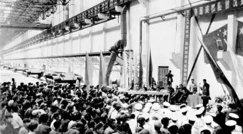 1959年8月22日,凝結(jié)著干部職工心血和汗水的32輛59式坦克,比建廠時(shí)計(jì)劃進(jìn)度提前一年交付部隊(duì),經(jīng)過(guò)嚴(yán)格考核試驗(yàn)后參加了建國(guó)十周年國(guó)慶大閱兵。