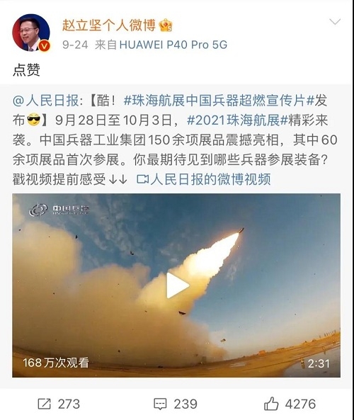9月28日-10月3日,第十三屆中國國際航空航天博覽會在廣東珠海舉行,中國兵器工業(yè)集團有限公司作為主辦單位閃耀亮相,推出裝甲突擊、火力打擊、智能彈藥、防空反導、無人裝備、非傳統(tǒng)安全、軍工軍技合作等領域新產品及成體系成建制武器系統(tǒng)和解決方案,全方位展示我國陸軍外貿武器裝備的最高水平以及雄厚的科技創(chuàng)新、自主研發(fā)與先進制造能力,受到廣泛關注。 央視《新聞聯播》報道第十三屆中國航展,著重介紹了VT4主戰(zhàn)坦克,關注航展公眾日中國兵器館情況。9月28日下午央視《新聞直播間》航展特別節(jié)目《藍天盛會》邀請集團公司訪談嘉賓做客直播間對中國兵器館兵器工業(yè)集團展區(qū)等進行1小時直播;9月28日下午、10月2日下午分別對地面裝備動態(tài)表演進行兩場直播。央視《朝聞天下》、《新聞直播間》、《共同關注》、《天下財經》、《軍事報道》、《正午國防軍事》、《軍武零距離》等相繼推出集團公司參展裝備的報道。 人民日報、新華社、中國日報、共青團中央、國資小新、騰訊軍事、鳳凰軍事、新浪軍事等新媒體發(fā)布的集團公司航展宣傳片等視頻作品燃爆全網,閱讀量突破三千萬人次,得到外交部發(fā)言人趙立堅轉載點贊。集團公司微信、微博、抖音號、微信視頻號等新媒體宣傳片播放閱讀量超過400萬人次。同時,央視新聞、新華社、中國之聲、央視軍事、央視新媒體、解放軍報、共青團中央、國資小新、環(huán)球時報等多家媒體對集團公司靜、動態(tài)展區(qū)進行現場直播,在電視端、客戶端、微信視頻號、微博、B站、快手、抖音等平臺受到高度關注。著名軍事專家杜文龍、央視主持人顧國寧、央廣中國之聲主持人王藝等直播兵器館、動態(tài)表演區(qū)裝備。 《參考消息》、新華網、央廣網、中國日報、科技日報、解放軍報、人民網、中國新聞網、中國青年網、中國網、中工網、央視網、環(huán)球網、騰訊網、新浪網、鳳凰網、搜狐網、網易網、今日頭條等中央主流媒體和知名網絡媒體以及南方日報、廣東電視臺、北京電視臺、新京報、珠海傳媒集團、深圳衛(wèi)視等省市媒體對集團公司參展情況進行了圖片、文字、視頻報道。 航展期間,備受關注的中國兵器館,參觀的觀眾絡繹不絕。 |