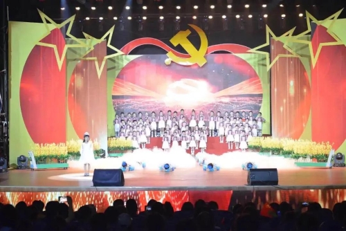 演出共分為三個篇章:“迎建黨百年、傳兵工精神”“憶長征歲月、夢璀璨中國”“承紅色基因、展幼教初心”。演出過程中掌聲不斷,高潮迭起,有合唱,有情景劇,有舞蹈,有快板,全科共361名演出人員,孩子們個個落落大方,神采飛揚,《在燦爛陽光下》《燈火里的中國》《兵工情》,銘記紅色歷史,引導孩子們從小繼承革命傳統(tǒng),傳承兵工精神”。《春天的芭蕾》《我愛北京天安門》《水墨丹青繪祖國》《長征路上》一首首歌曲鏗鏘有力,一段段回憶激蕩人心,師幼同臺唱出了對黨對祖國的熱愛和崇敬之情,讓人們感受到孩子們爭做新時代紅色接班人的信念、決心?!栋褠郢I給咱的娃》《未來的保衛(wèi)者》《炫彩青春》引導孩子們從小繼承革命傳統(tǒng),傳承紅色基因,讓紅色教育點亮童年,讓紅色精神代代相傳?!皞鞒屑t色基因,紅色精神代代相傳。”