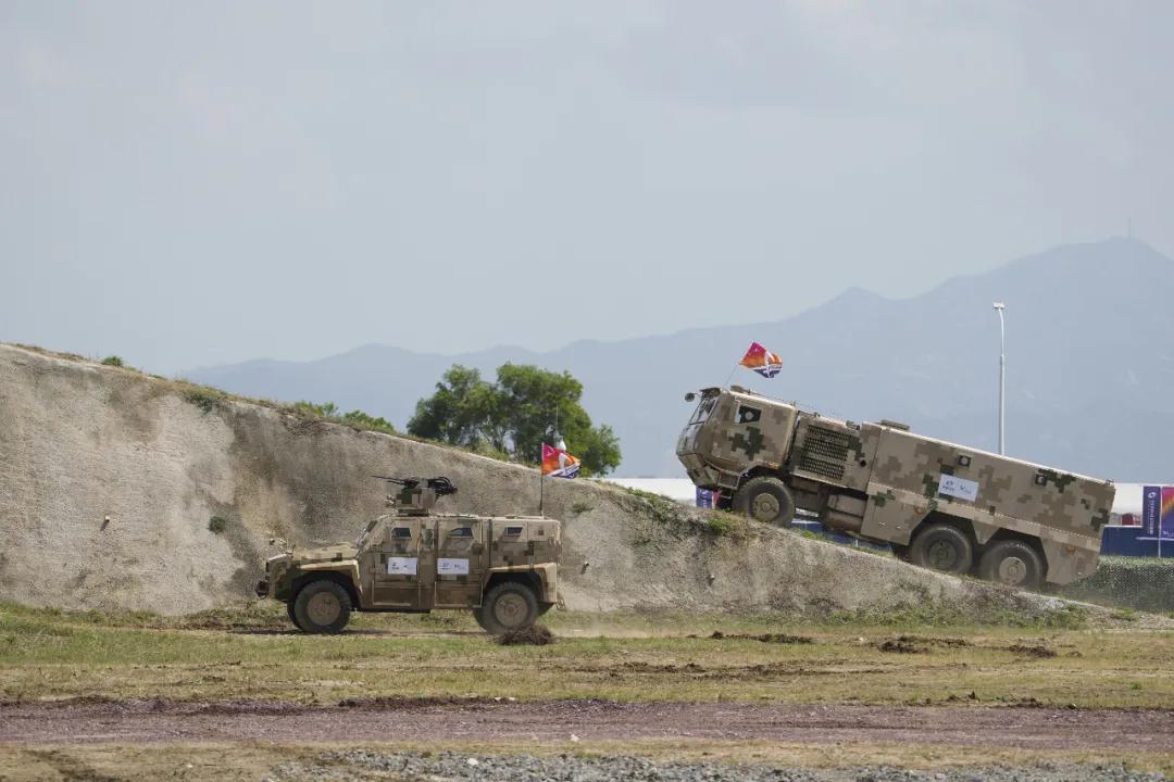 地面裝備動(dòng)態(tài)表演環(huán)節(jié),場(chǎng)地進(jìn)一步增大,由兵器工業(yè)集團(tuán)自主研發(fā)制造的主戰(zhàn)坦克、輪式裝甲車、履帶式步兵戰(zhàn)車、防雷車、輪式防護(hù)型步兵輸送車、運(yùn)輸車等將現(xiàn)場(chǎng)表演爬縱坡、過(guò)壕溝、涉水池、蛇形機(jī)動(dòng)等項(xiàng)目,展示高度的機(jī)動(dòng)靈活性和強(qiáng)大的越野能力,為廣大觀眾帶來(lái)耳目一新的視覺(jué)盛宴。