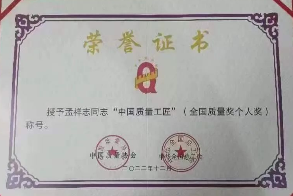 兵器工業(yè)集團(tuán)孟祥志榮獲“中國質(zhì)量工匠”稱號 |