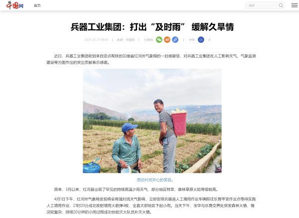 中國網(wǎng)報(bào)道兵器工業(yè)集團(tuán)助力云南省紅河州氣象保障 |
